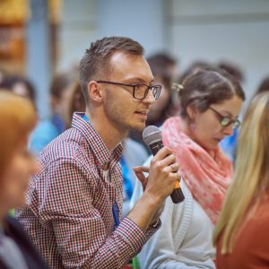 | 14.00–15.00 | SESJA II: Michał Tragarz, Samorząd uczniowski jako społeczność wszystkich uczniów i uczennic Przemek Dziewitek, Trening uważności w codzienności, czyli jak poprzez empatyczny kontakt z drugim człowiekiem poznawać siebie Katarzyna Piwońska, Pedagogika teatru – nowe spojrzenie na teatr w szkole |